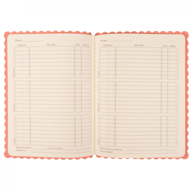 Щоденник для школи формат 170 x 212 мм., інтергальна палітурка з еко-шкіри. Внутрішній блок з кремого офсетного паперу щільність 70г/м2. Щоденник включає в себе сторінку з особистими даними учня, список вчителів, розклад уроків, канікул та іспитів, відомості про успішність, план на навчальний рік. Інформаційний блок: табель, розклад уроків, списки вчителів, розклад факультативних занять. Виробник ТМ YES.